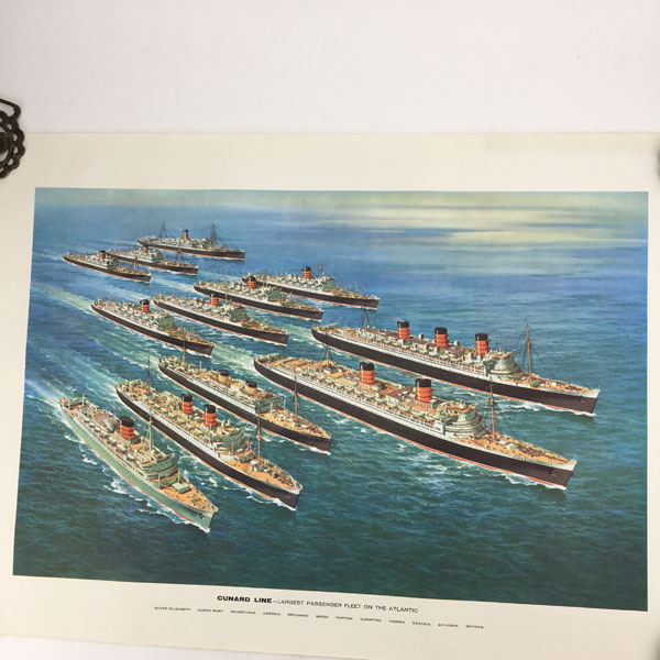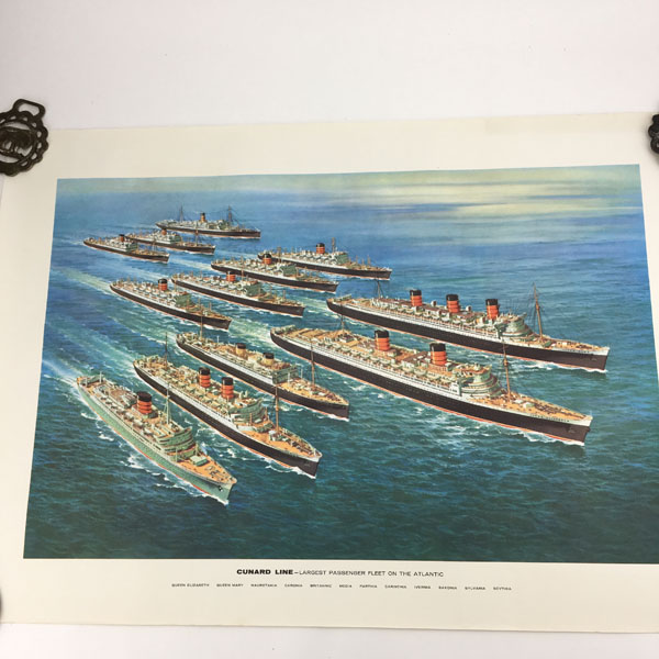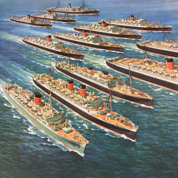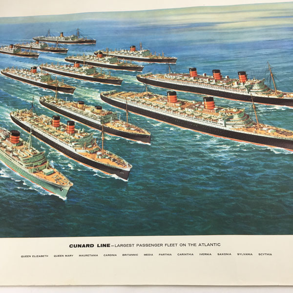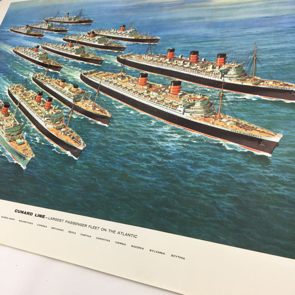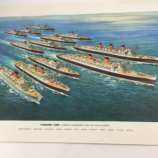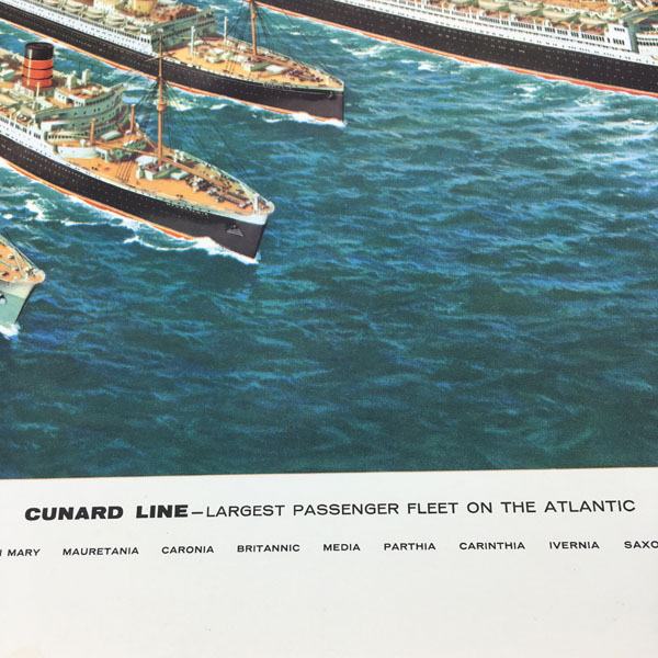 A large original 1950’s poster that celebrates a review of the Cunard fleet as it was in that time.