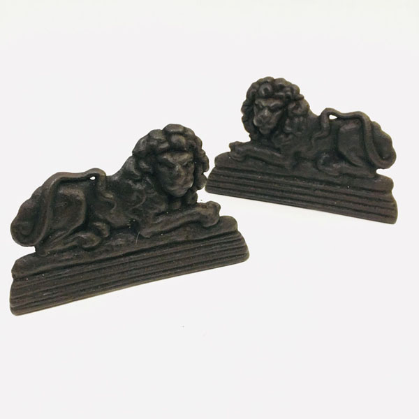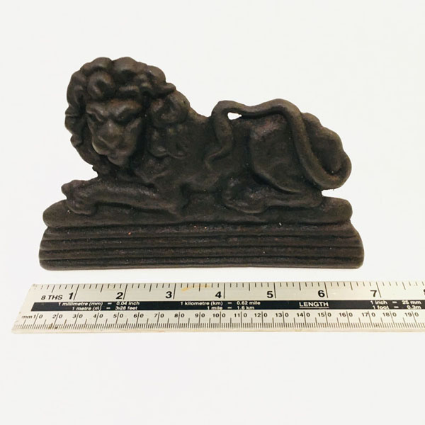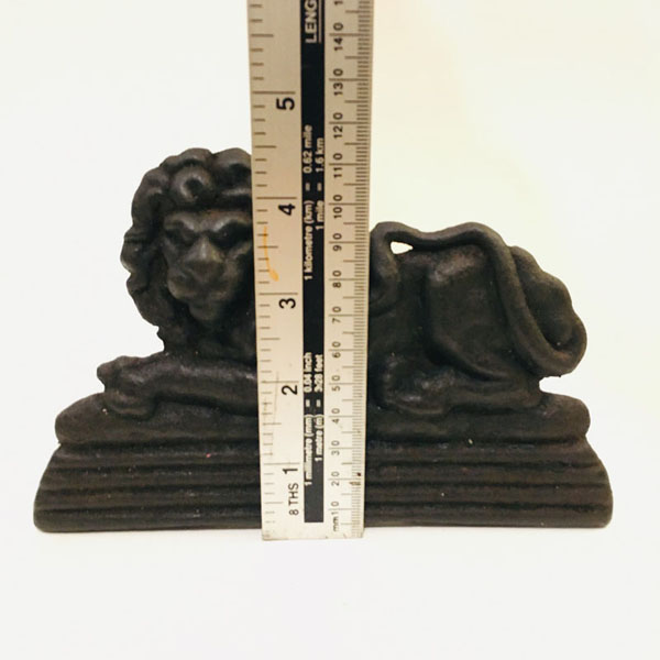 A pair of heavy antique cast iron lions – very decorative – possibly doorstops or maybe firedogs. – let us know what you think.