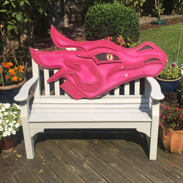 This dragon is facing right – the other faces left giving you the potential for the two pieces facing each other and forming an arch or a single piece which is bright, tactile and a lot of fun that will look good in any domestic or retail setting and definitely be a talking point.