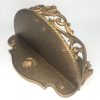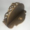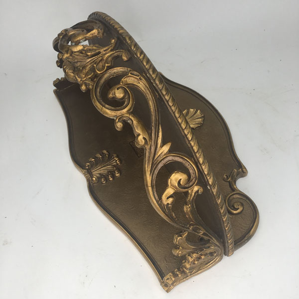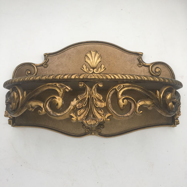This piece is mainly wooden in construction with plaster and resin decorative areas finished in a gilt or gold paint. It fixes to the wall with 2x screws or bolts (not provided) by way of the 2x screw holes built into the backing underneath the main shelf.