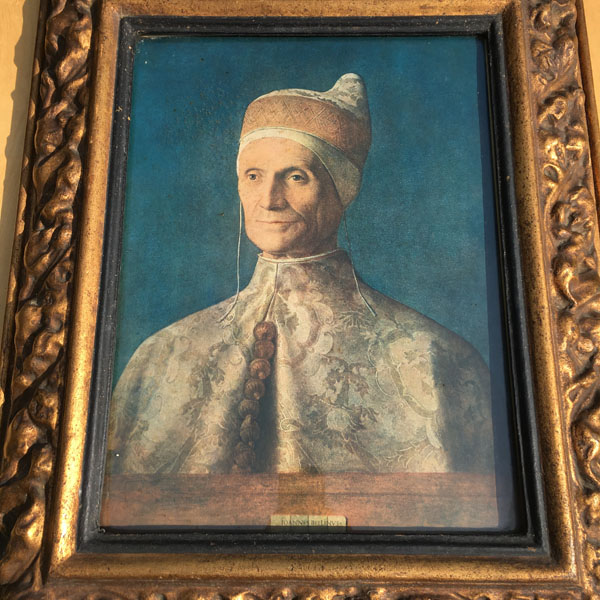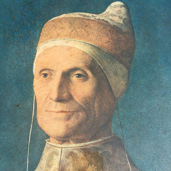 An impressively framed early print of the Doge Leonardo Loredano by Giovanni Bellini originally painted in 1501 and now displayed in the National Gallery in London.