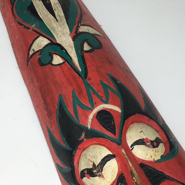 This 62cm high mask with an open mask was probably used in a ball throwing game to win prizes.