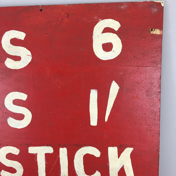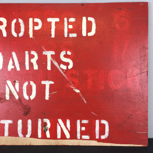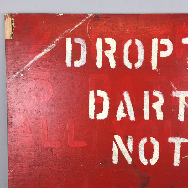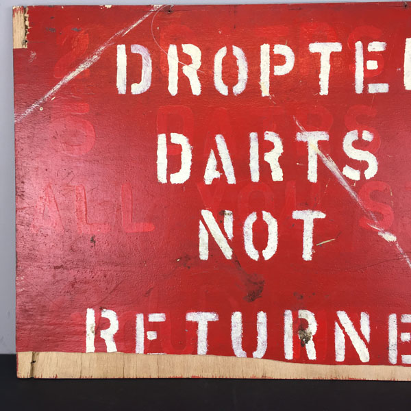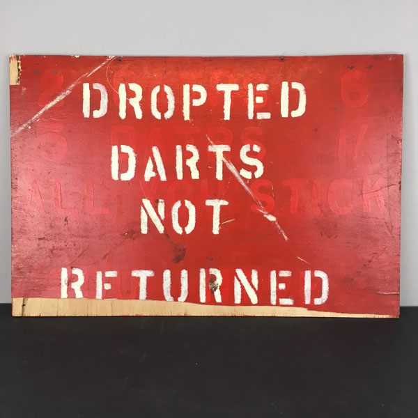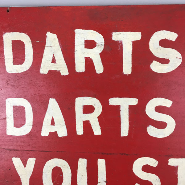 A good sized hand painted double sided sign from a fairground sideshow darts game.