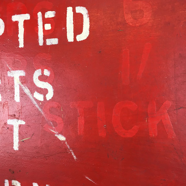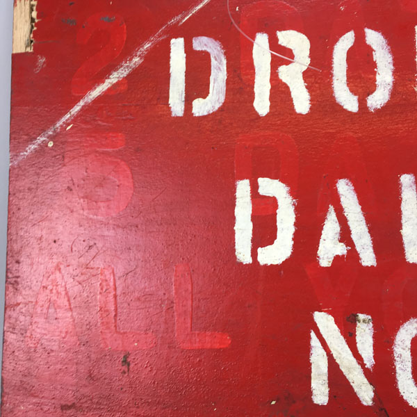 There is evidence of this sign being painted over the top of an older sign as you can see the previous messages through the red paint when the light catches them. We’ve tried to capture this in the photos.