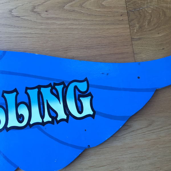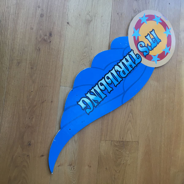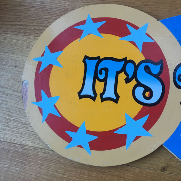 This is a pre-owned and used fairground ride sign of a late 20th century ride,