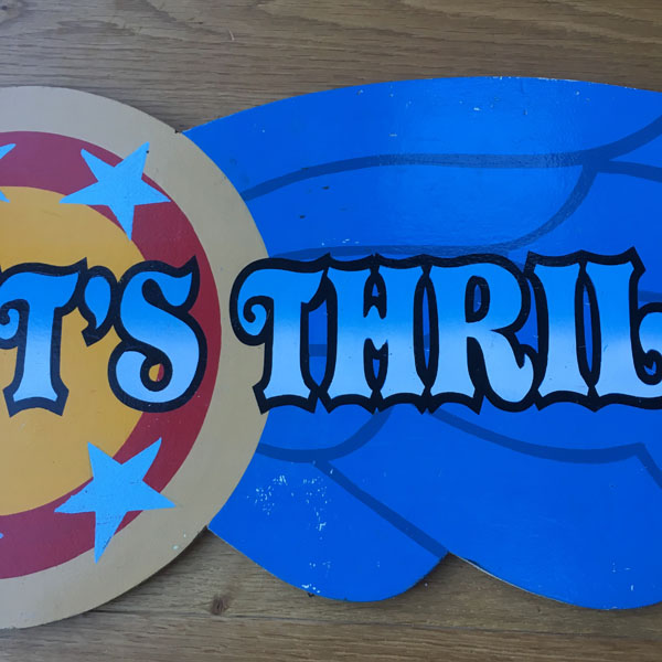 Being one of a series, each with a different message to tell the wider story of the ride. This one saying “It’s Thrilling”