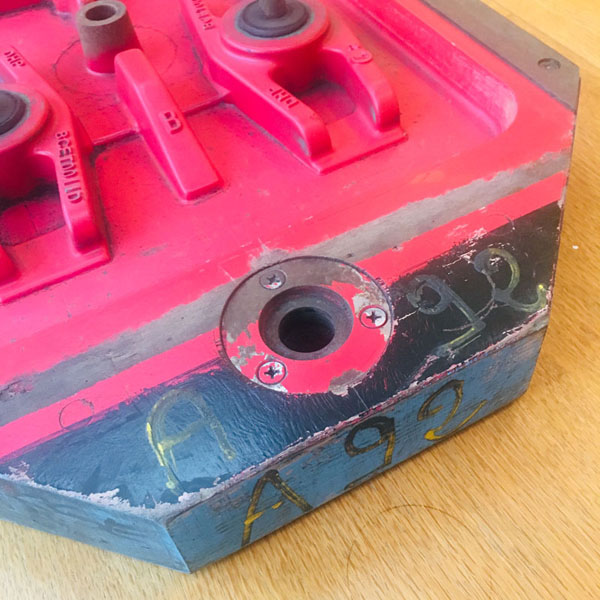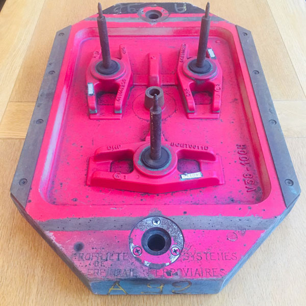 A heavy (9kg) DAF Motors’ engine part casting pattern made mainly of wood with metal and plastic detailing.