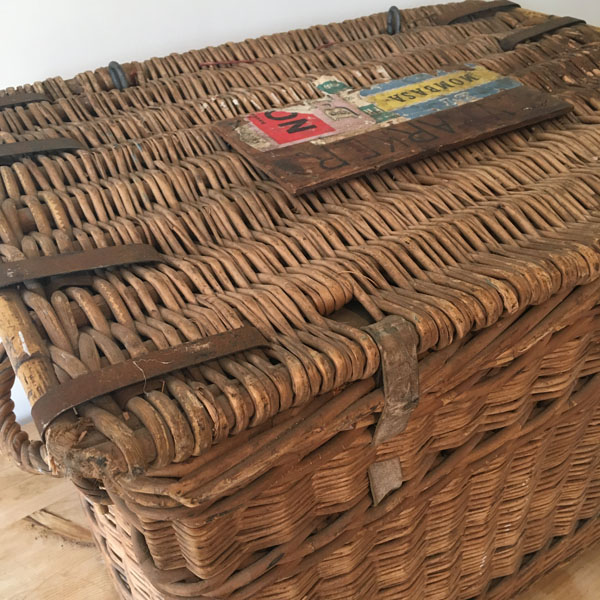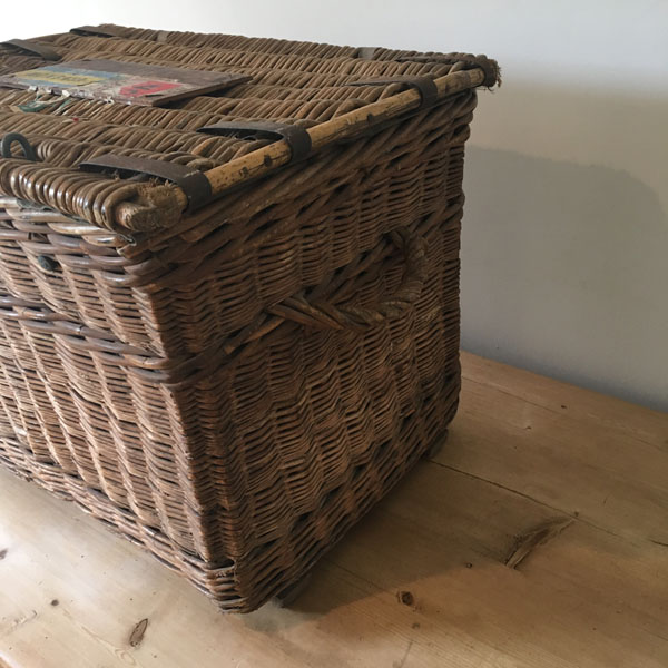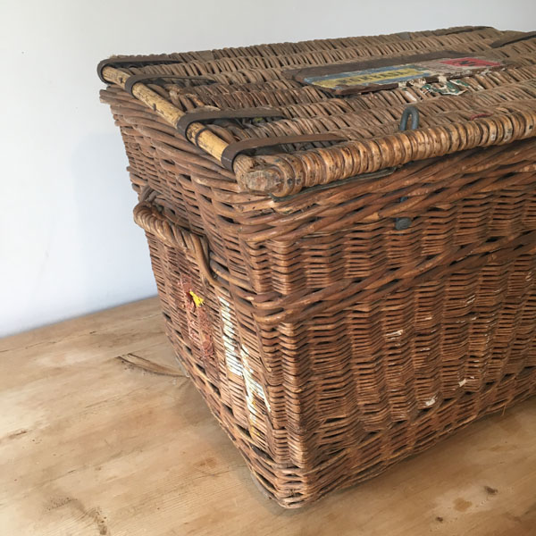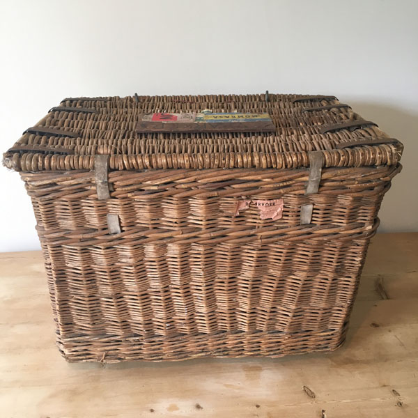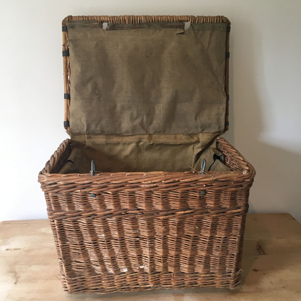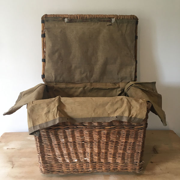 This is a clean, sturdy, heavy and interesting example of a British WW2 War Department wicker basket that was used to transit (probably) documents between the UK and Africa. There are stamps to the waterproof lining for the War Dept with thier distinctive arrow head and the makers name and date (1942 are also stamped on the liner.