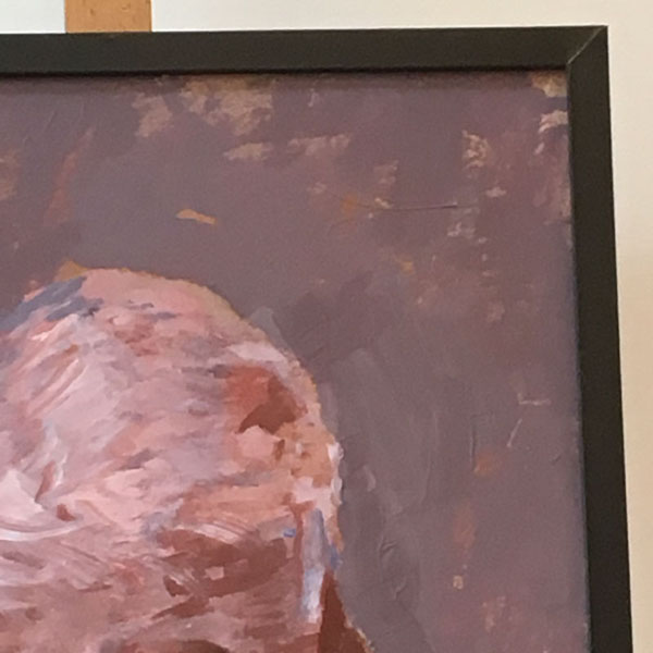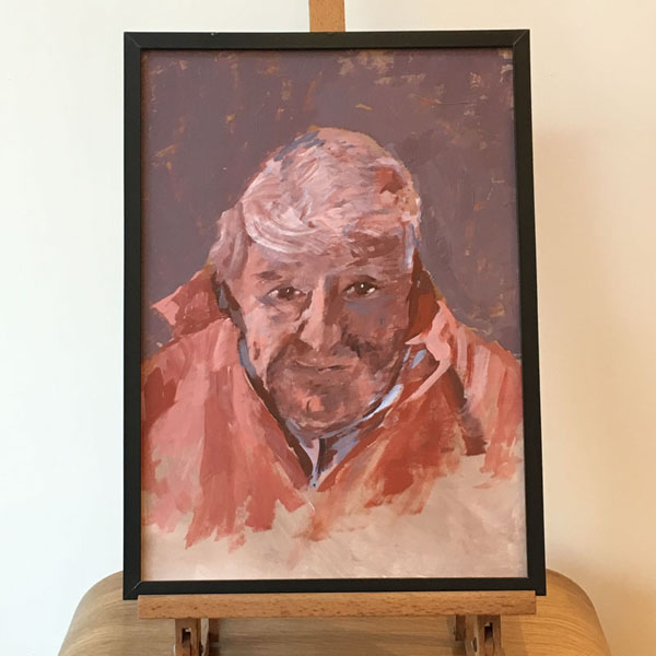 A framed portrait in oil, painted on artist’s board of an older gentleman in very good condition – framed not glazed.