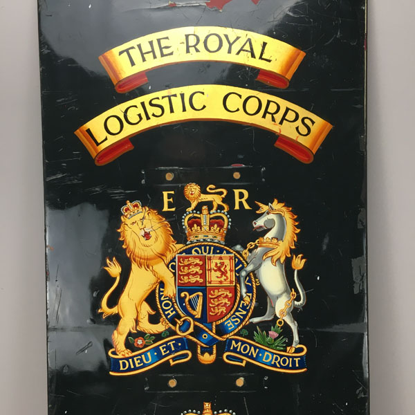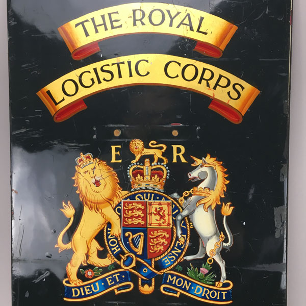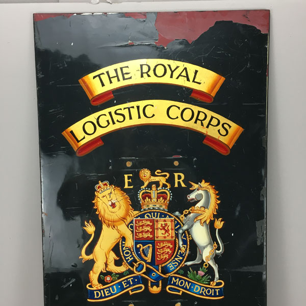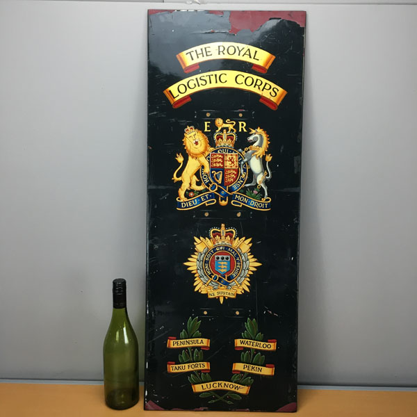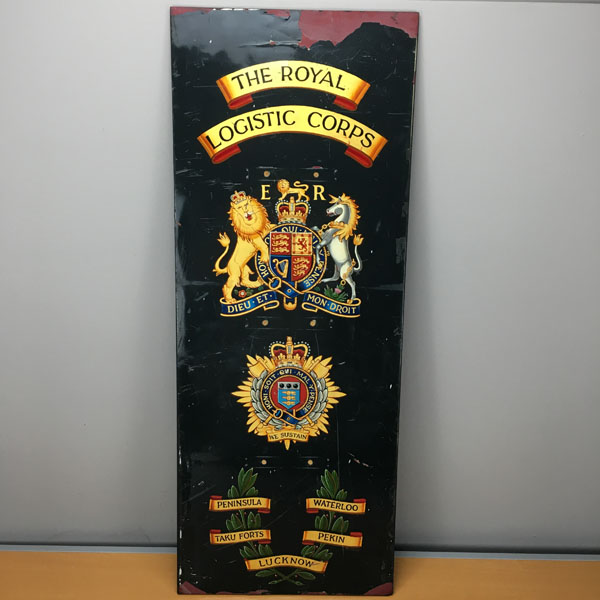 A pre-owned original vintage British Army Royal Logistic Corps display plaque or sign which is in pretty good used condition.
