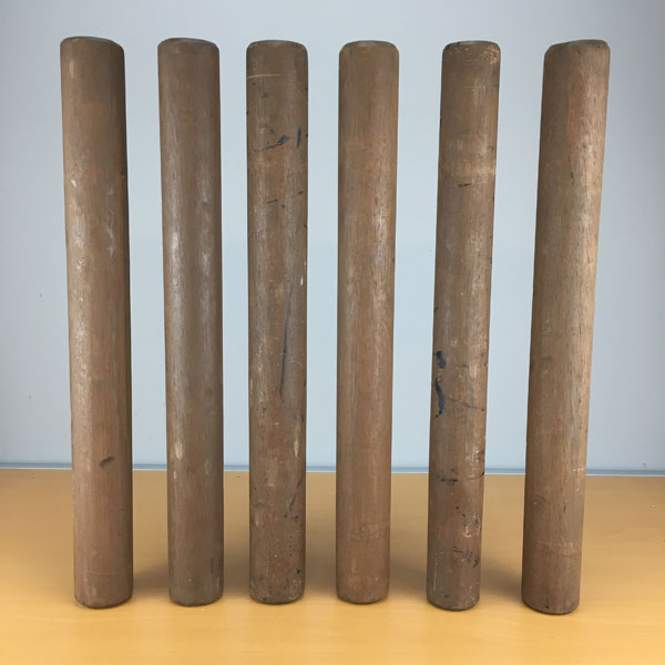 A set of six pre-owned and used Aunt Sally sticks sourced locally here in Oxfordshire and likely to have come from a local pub.